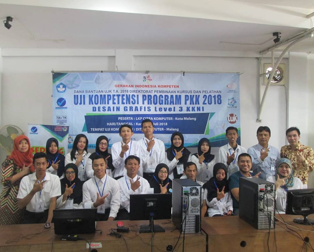 Pelaksanaan Uji Kompetensi Desain Grafis 2018 di LKP Citra Komputer Kota Malang, 5 Juli 2018