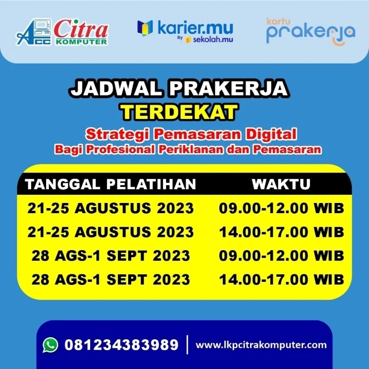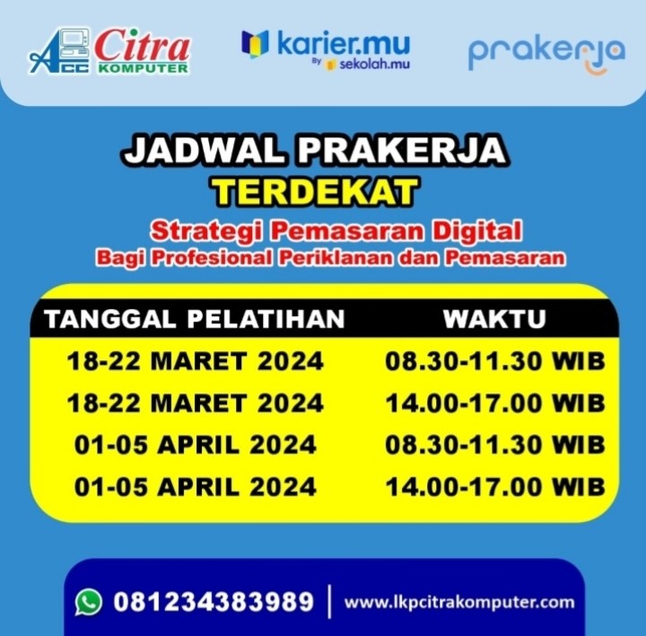 Yuk Beli Pelatihan Prakerja sekarang juga di LKP Citra Komputer ya sob!